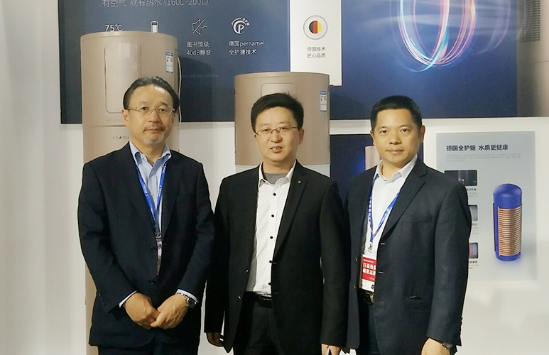 LEASY德國領致空氣能戰(zhàn)略合作供應商日本松下壓縮機公司董事、總經(jīng)理坪川正浩先生、運營總監(jiān)沈珂明先生來到LEASY領致展位交流!
