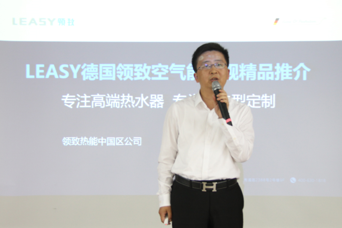 會(huì)議期間,德國(guó)領(lǐng)致空氣能中國(guó)區(qū)營(yíng)銷(xiāo)總監(jiān)孫雷向與會(huì)人員介紹企業(yè)發(fā)展歷程、創(chuàng)新技術(shù)、產(chǎn)品優(yōu)勢(shì)及應(yīng)用價(jià)值等。