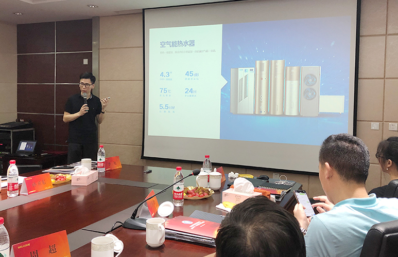 會(huì)前,與會(huì)企業(yè)家共同走進(jìn)LEASY領(lǐng)致產(chǎn)品展示廳,觀看了企業(yè)宣傳片,體驗(yàn)了最新研發(fā)的智能廚電產(chǎn)品。在展廳一角,LEASY領(lǐng)致全系列空氣能熱水器、全屋熱水系統(tǒng)墻得到了協(xié)會(huì)領(lǐng)導(dǎo)、企業(yè)家們的頻頻稱贊!