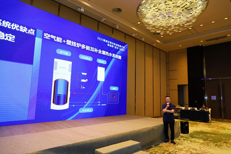 在健康人居環(huán)境論壇環(huán)節(jié),國家住宅環(huán)境中心、領(lǐng)致熱泵、歐文托普、愛賽為等單位為參會者送上健康空氣、健康水、健康管路的健康大餐!LEASY GmbH德國領(lǐng)致中國區(qū)營銷總監(jiān)孫雷應(yīng)邀做了《空氣能+多能互補(bǔ)家用全屋健康熱水系統(tǒng)解決方案淺析》主題干貨分享,贏得現(xiàn)場參會者矚目和點(diǎn)贊。