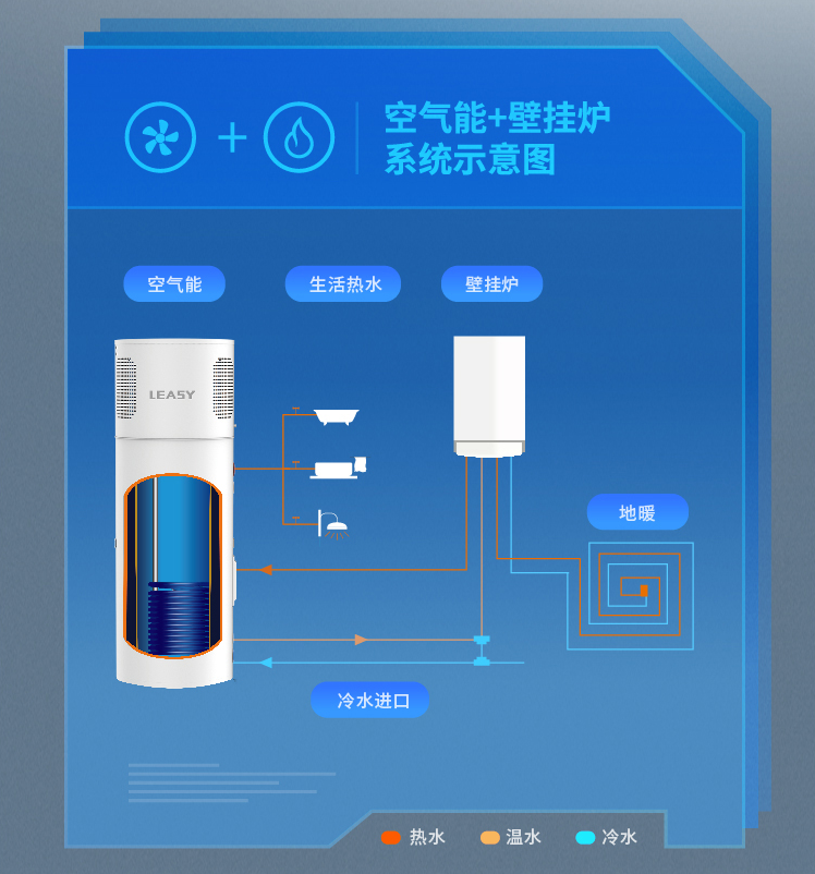 ▲LEASY領(lǐng)致壁掛爐互補(bǔ)空氣能一體機(jī)