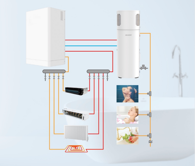 ▲LEASY領(lǐng)致別墅高溫靜音型空氣能一體機(jī)
