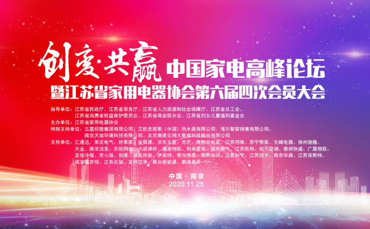 11月25日,由江蘇省家用電器協(xié)會主辦,以“創(chuàng)變 · 共贏”為主題的2020中國家電高峰論壇暨江蘇省家用電器協(xié)會第六屆四次會員大會在中國·南京隆重召開。