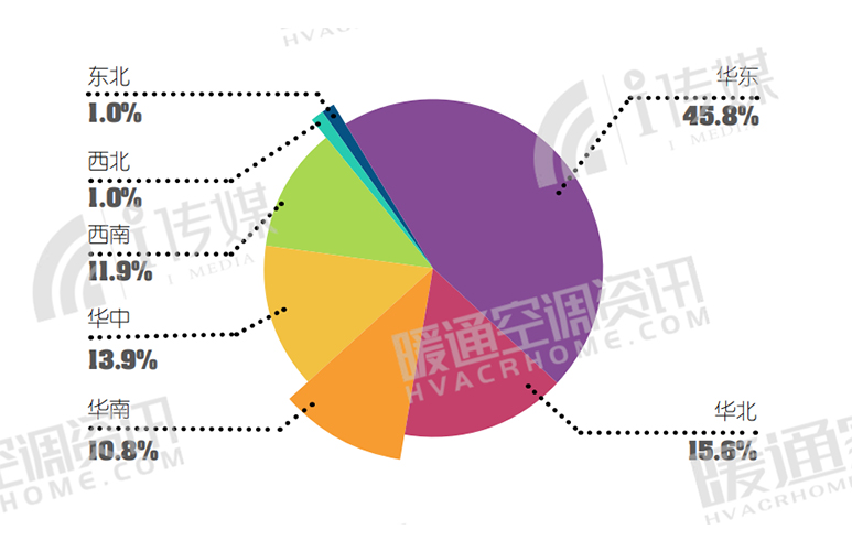 2019年上半年兩聯(lián)供機組(含戶式水機)市場各區(qū)域占有率