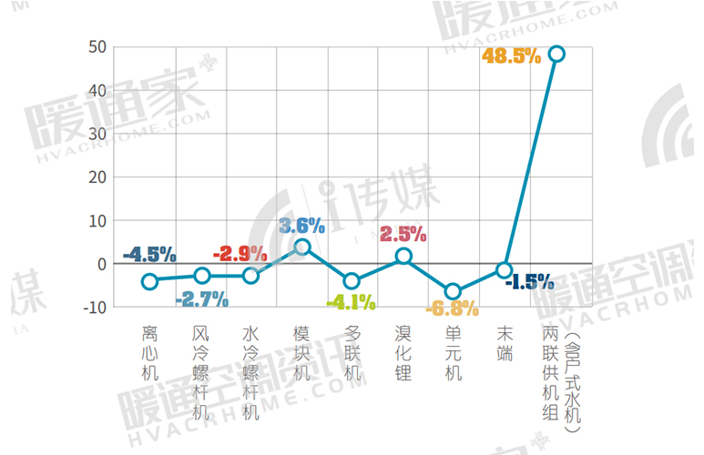 2019年上半年中央空調(diào)九大類產(chǎn)品增長率